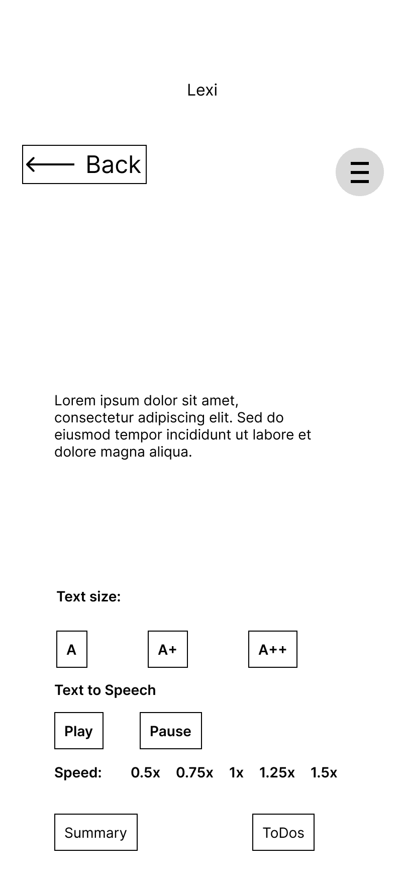 The next step for Lexi is personalization: allowing users to save preferred font size and reading speed. I would also run usability tests with a broader and more diverse group to validate assumptions and uncover new accessibility needs.